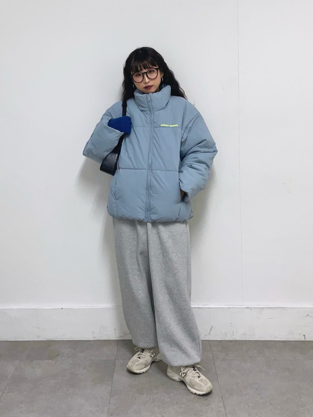「mihns closet/ミンズクローゼット パデットショートブルゾン」のアウターが主役のコーデ☁💙 韓国らしい中綿ダウン、新色のライトブルーを着用しました🙆♀️ マットな質感なので高見えします〜👍 何よりシルエットが凄く良くて、中綿もしっかり入っているのでかなり暖かくて北海道に住む私にとってこれからの季節大活躍の予感✨️⛄️ 合わせたスウェットパンツはUNIQLOです! 🏷NO NEED/ノーニード ZOZOTOWNにある韓国ストリート系のブランドです🇰🇷 男性はもちろん女の子でも着れるアイテムか沢山あるので是非チェック✨