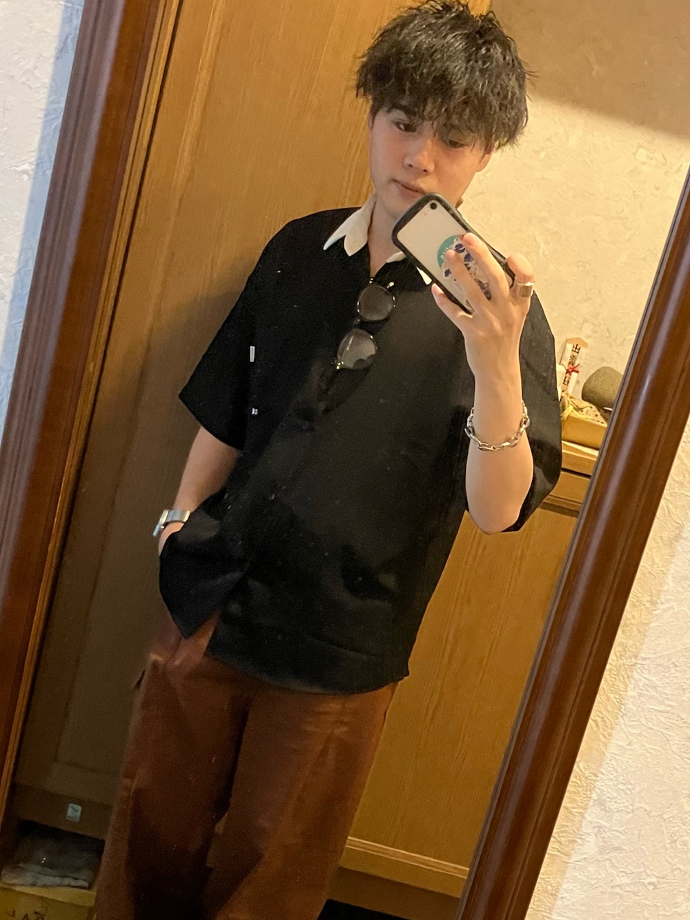 Watanabe Jinのシャツ/ブラウス「【a-r】〔RedCapGirl/レッドキャップガール〕ルーズサイズバック刺繍半袖シャツ イージーケア/接触冷感/ストレッチ」を使ったコーディネート