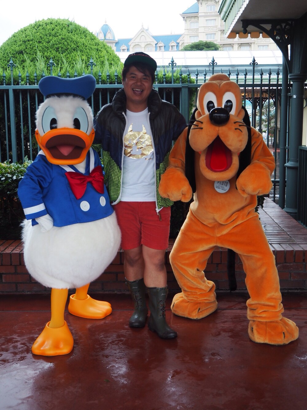 今日から本当のハロウィーンイベント初日‼︎でも土砂降り…でも休み…行くしかないと思って行ってきました。ランドは全身仮装ができるのでたくさんの方が仮装していて一緒に写真撮らせてもらいました‼︎ そして偶然にもドナルドとプルートに挟まれる機会もあって、雨だけど楽しんできました。 濡れてもいいスタイルでこんな格好ですが一応Tシャツはハロウィーン仕様です。長靴でまさかの靴擦れ起こしたのは驚いたけど救護室の方にカットバンを貼っていただき感謝でした。