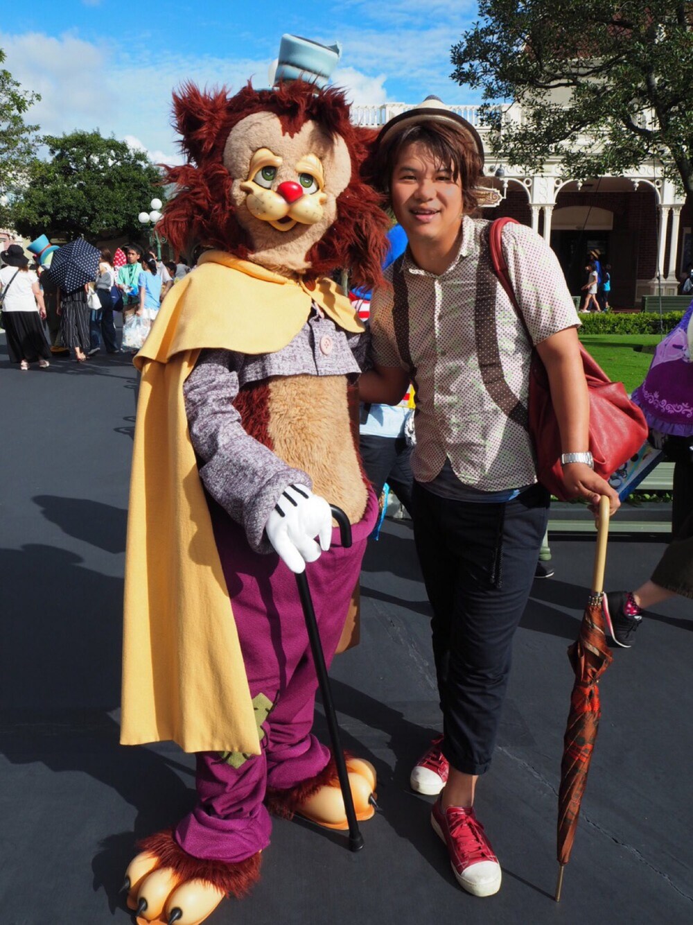 おはようございます☀️ そしていつもありがとうございます😊 台風が立て続けに発生、上陸と不安定な天候が続いてます💦 昨日も降ったり止んだりに悩まされながら少しだけインしてきました。 時間と天候の関係でギデオンとミスバニーにしか会えなかった…この時は青空が広がってました☀️ しかし、夕方のパレードが始まった頃からポツポツ…そして土砂降り…パレード大丈夫だったか心配になるくらい凄かった😂 この日の一枚はギデちゃんと。お帰り間際に撮れたのであまり遊んでもらえず(笑) コーデはクローゼットにこんな服あったんだと見つけたコーデ☝️ そして傘はブラジルの市場の柄…なんとなくリオに絡めて(笑) 雨がひどいし、蒸し暑くて、びっしょりなためアウトしてから表参道へ。 顔ハメ看板展を観に行ってきました。 閉店間際に駆け込め、5種類の顔ハメ看板をはめてまいりました😁 5人のクリエイターの方がそれぞれ作ったものを集めた展覧会で、そのうちの「一人焼肉」を作られたクリエイターさんがいたので、一緒に焼いてもらいました(笑) その他も載せているのでよければご覧ください‼️ さてこれから出かけて来ます💨