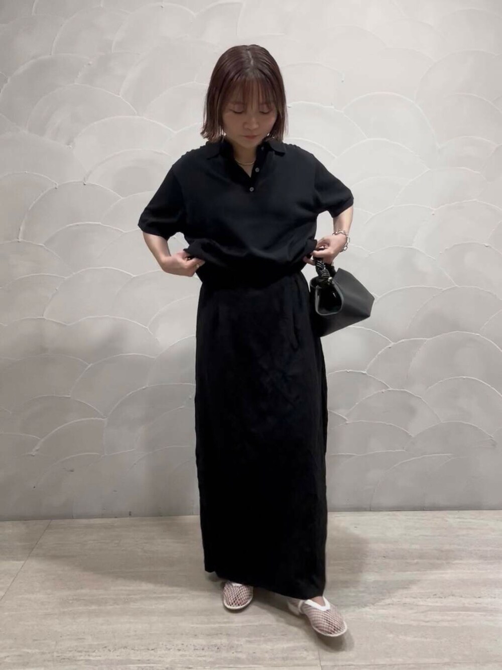 トップスのシャツカラーニットは 肌触りのいいドライタッチな素材で、 涼しく着れます◎ GGGの別注スカートとワントーンで コーディネートしました。 程よくゆとりのあるストレートなシルエットなので 夏でもストレスフリーに着用できます!