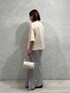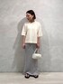 やや艶感あるハイゲージニットteeは ストレッチが効いていてストレスフリーに着用頂けます◎ 今の季節から秋くらいまで着られそうな素材感です!