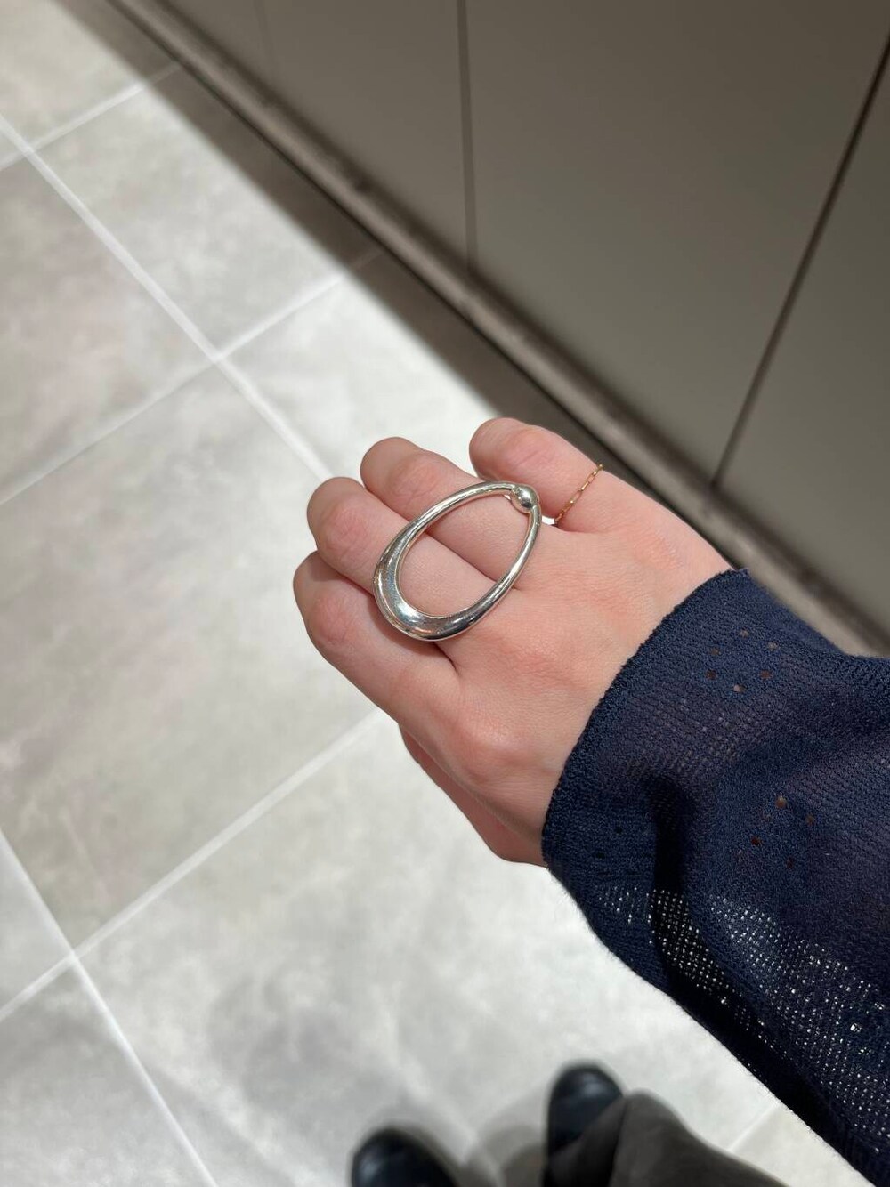 チェーンリングは組み合わせ万能で、 しっかりと存在感のあるリングとのコーディネートにもおすすめです。