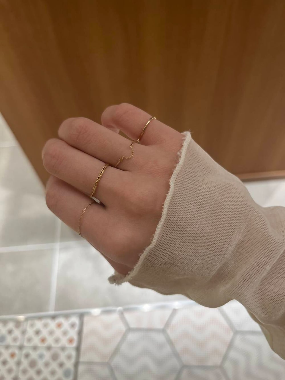 ffと18Kチェーンリングを合わせました。 ヒネリカーブリングはサイズ展開豊富で、 幅広くお使いいただけます。