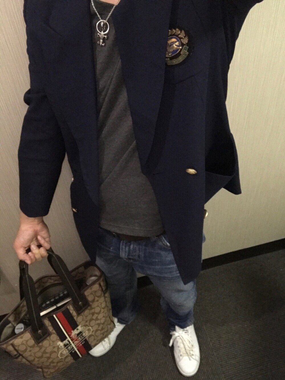 ラフな格好だけどジャケットで決めました。