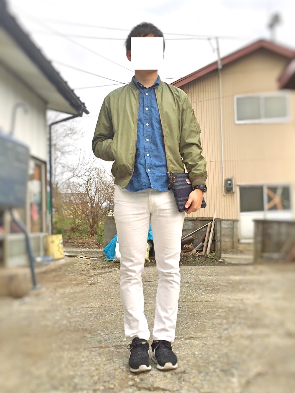 お久しぶりです。 今日は爽やか意識で白パンに😎(笑) 久しぶりに白パン履きました😗 何か見慣れなかったです😗(笑) デニムシャツちにMA‐1とスニーカーで シンプルカジュアルにしました😉 最近は寒かったり寒くなかったり よく分からないので崩さないように 気をつけていきましょう! いつも拝見ありがとうございます🙏 おしゃれさん仲良くしてください🙏