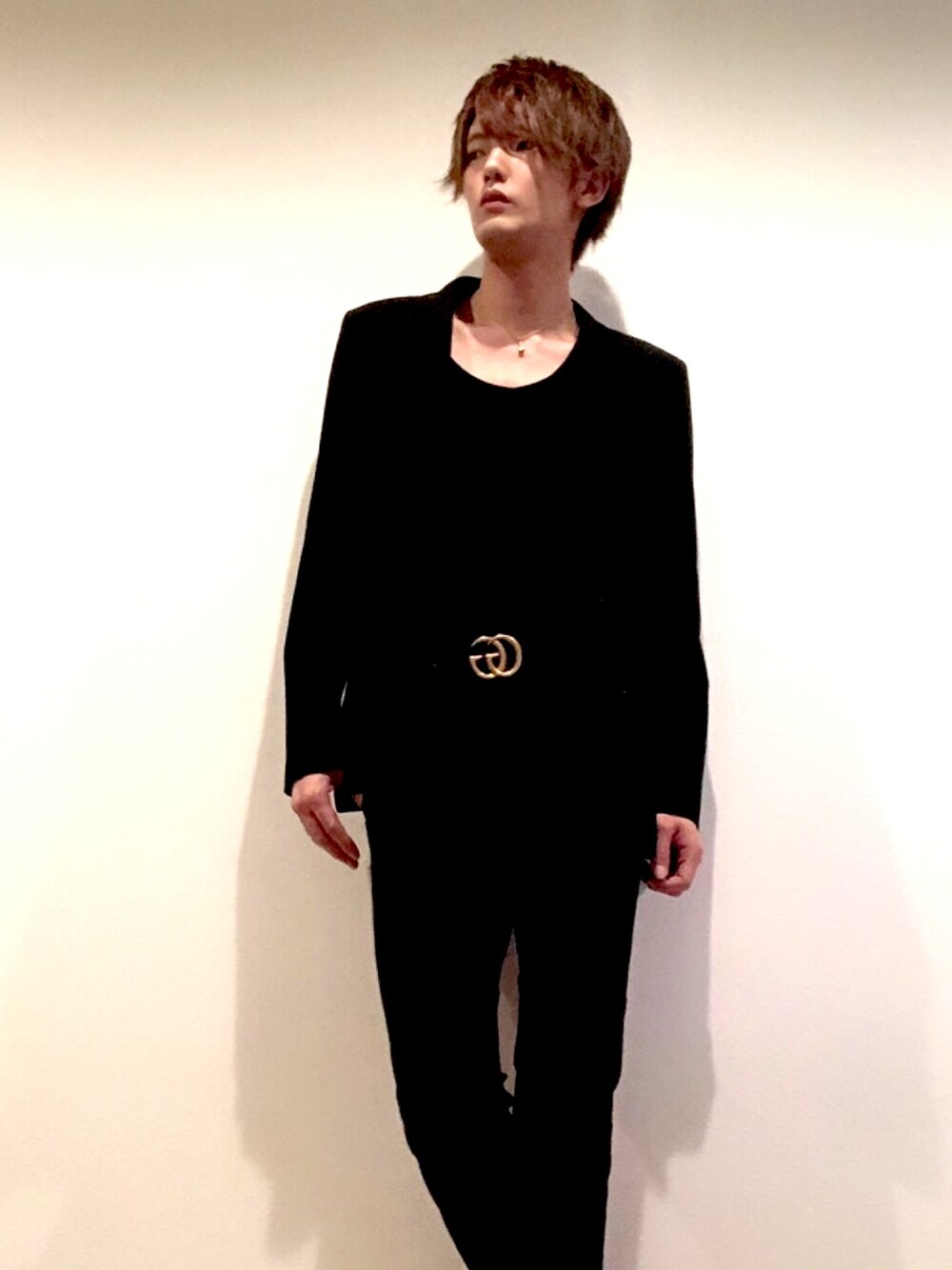 ・LOVELESSのセットアップスーツ ・真っ黒シンプルコーデ