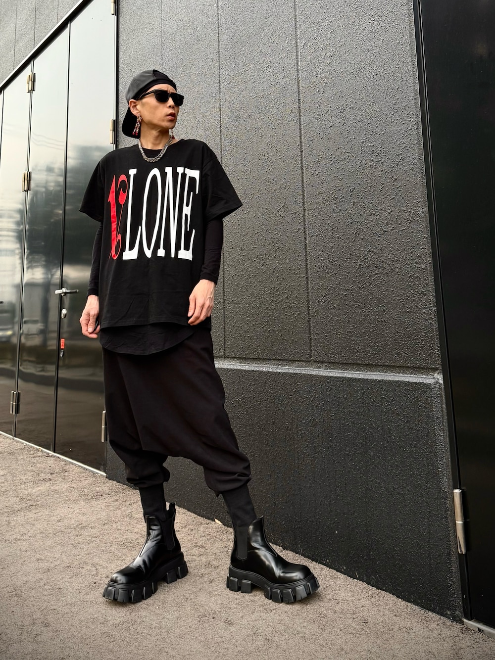 ☆ご覧いただきありがとうございます☆ JINです! 赤黒コーデ第3弾‼️ ストリートをラグジュアリーなモードでコーデしました❗️ ストリートのラフさと、主張するところは主張する メリハリのあるオールブラックが気に入ったコーデかなと思います😊 やっぱり自分はモード感が少し入ってないと、落ち着かないなーと思ったりしました☺️ 人それぞれコレコレってヤツがありますよね! 自分のはコレなノリです✨️ いつも見て下さり、ありがとうございます😊 ‼️‼️‼️‼️‼️ この投稿!!ハッシーさんのコーデと奇跡過ぎる 怖すぎるくらいスーパーリンクしてました‼️‼️ ストリートのコラボT サルエル ブーツ こんな事あるんですねー😆ビックリし過ぎました!!