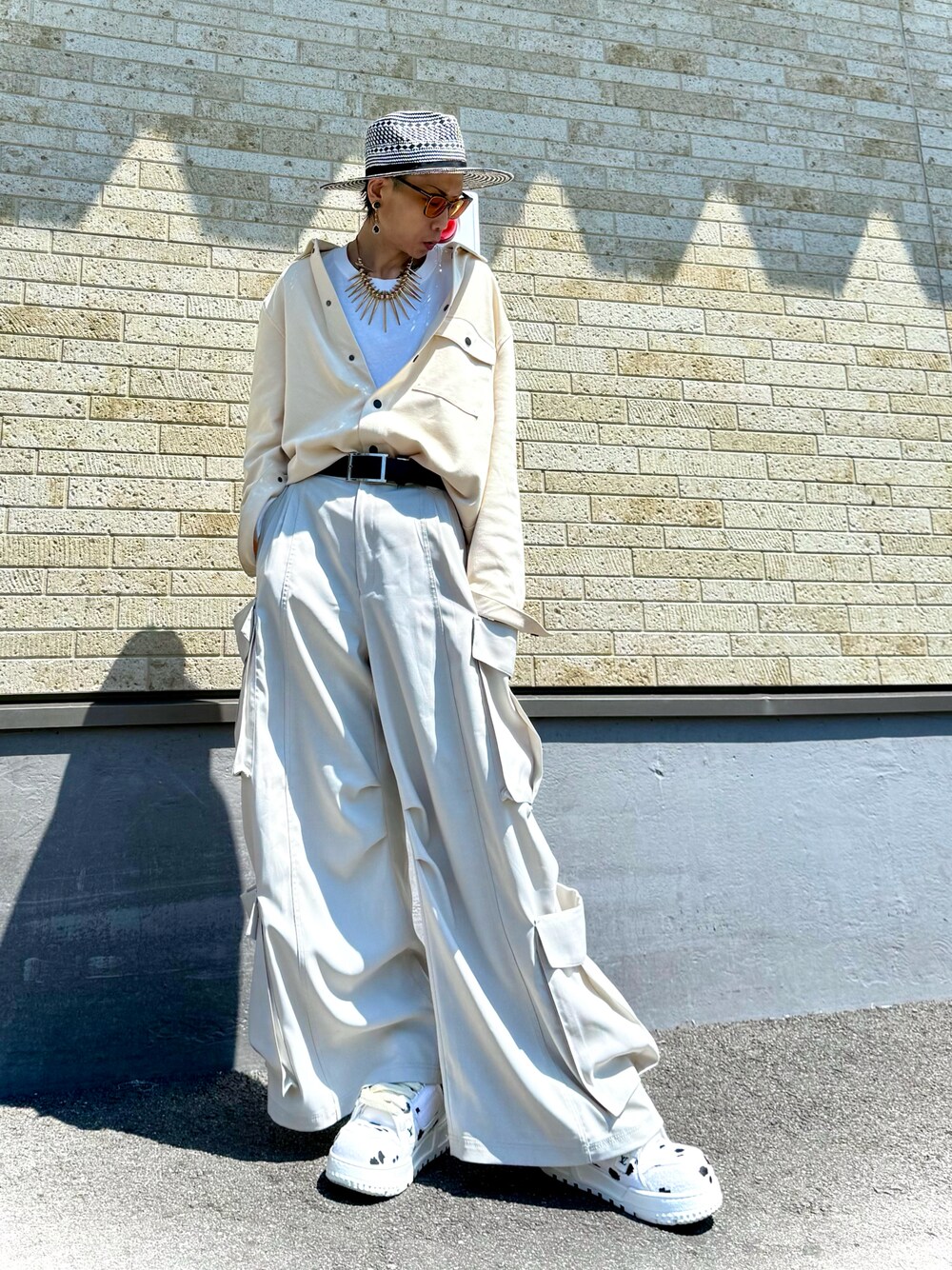 ☆ご覧いただきありがとうございます☆ JINです! 今朝投稿したヤツは白の色味がイマイチ良くなかったのと、暑くなったので薄着の投稿もさせて頂きます😅 昨日はオールブラック 今日はオールホワイト‼️でコーデしました ホワイトと言っても色調は多々あります。なのでコーデが中々決まらなかったりします。 このオールホワイトコーデのポイントは、 ハット・インナー・スニーカー この上中下を真っ白にする事‼️ 又、上中下に少しの差し色として黒を入れて全体を引き締める所にあります。 その上で、ラフなシャツの着方(ノウハウ動画) や遊びのあるボトムス 個性のあるアクセサリーやサングラスを付ける事で よりオシャレな雰囲気になるのではと 私は考えてコーデしました😊 ⭕️オールホワイトのポイントは 上と靴の色味を合わせるだけでも、まとまりが出る‼️ このポイントを押さえれば、いい感じになると思うので、是非オールホワイトコーデをやってみてください‼️ これからの季節 オールホワイトのコーデはかなりイケてると思うので、 トライです‼️😁✨️ いつも見て下さり、ありがとうございます‼️