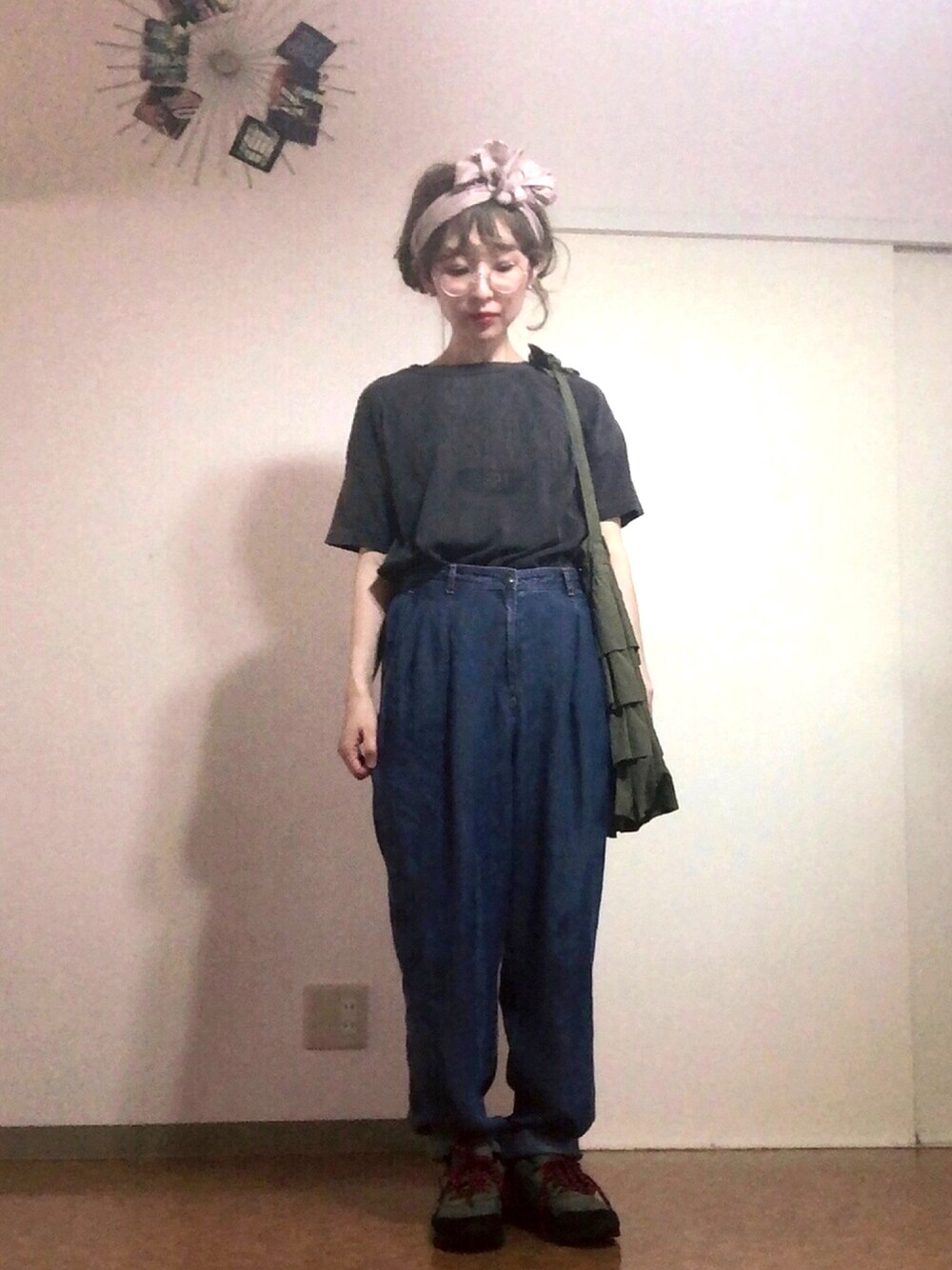 お仕事コーデ。 ボトムスは古着屋で購入。 三びきの子ねこ。 軽くて素材が柔らかくてこれからの季節にぴったり。 暑くなってくると重かったり分厚いボトムス履くのが辛くなってくるからこのボトムスはお気に入りです。 形も好きなんよね〜