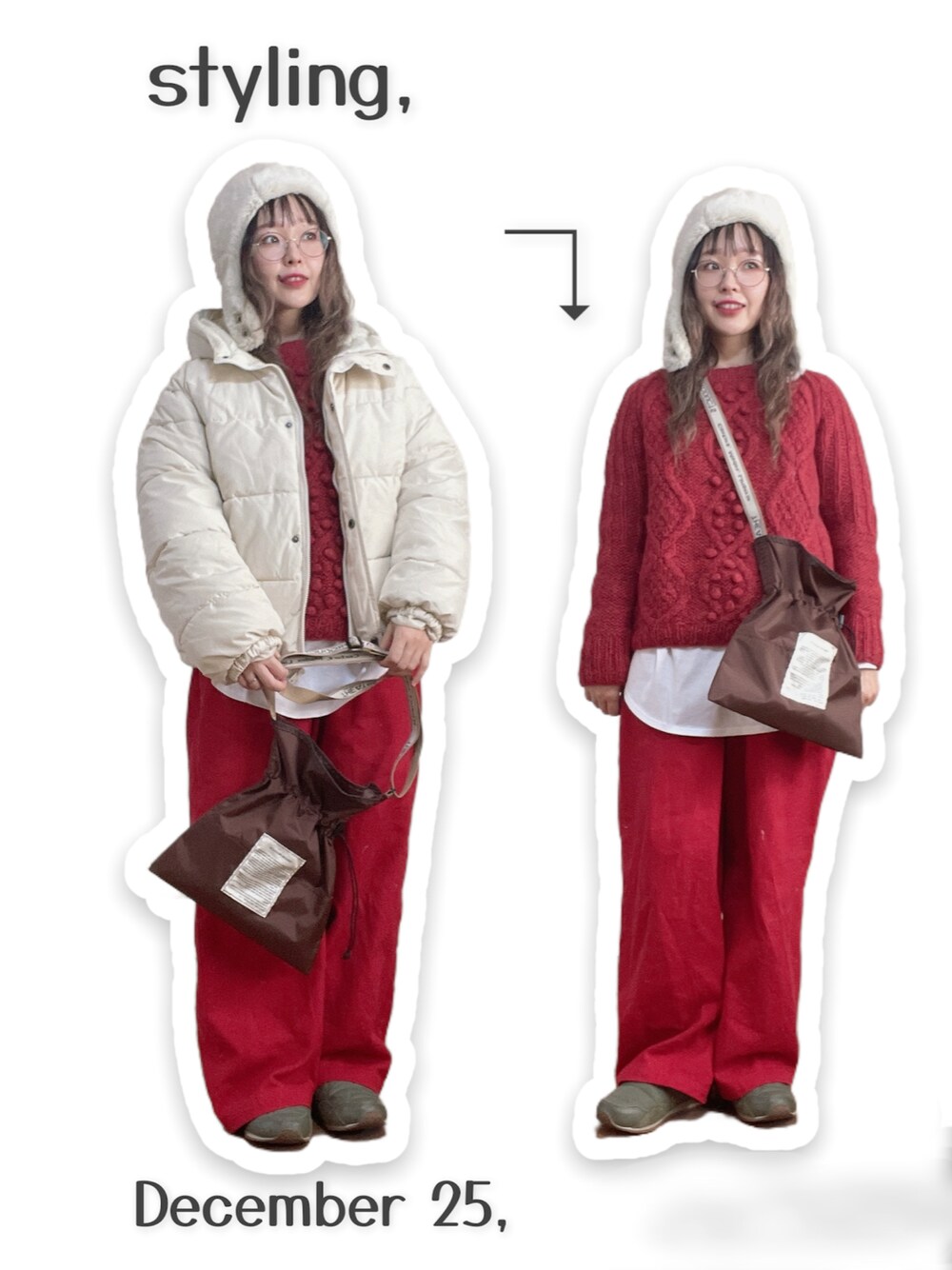 tomoコーデ 𖤣𖤥𖠿𖤣𖤥 昨日のコーデ 今日は赤白コーデ。 サンタさんやな🎅 Instagram : 《pugjamcat19》
