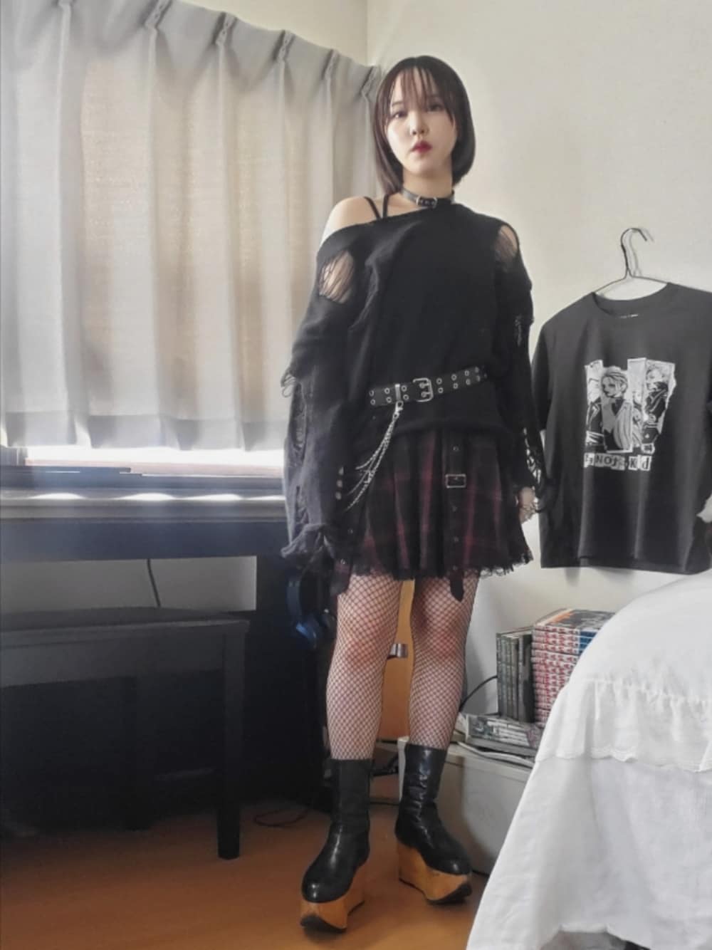 NANAの大崎ナナ風コーデです🥀 NANAの影響でもVivienne Westwoodを好きになりました! もちろん椎名林檎さんの影響もあります🙆🏻♀️ ̖́- ロッキンホースは成人式の時に手に入れた、 より思い入れのあるもので、 NANAのコレクションブースに飾っています✌️ ニットは単体でも可愛いですが、 シャツなど重ね着をしても可愛いかと思います︎︎👍 さすがに今の時期だと寒すぎるので、 このコーディネートはお家の中だけで楽しみました😖❄️ トップス / SHEIN スカート / Avail ブーツ / Vivienne Westwood ベルト / SHEIN