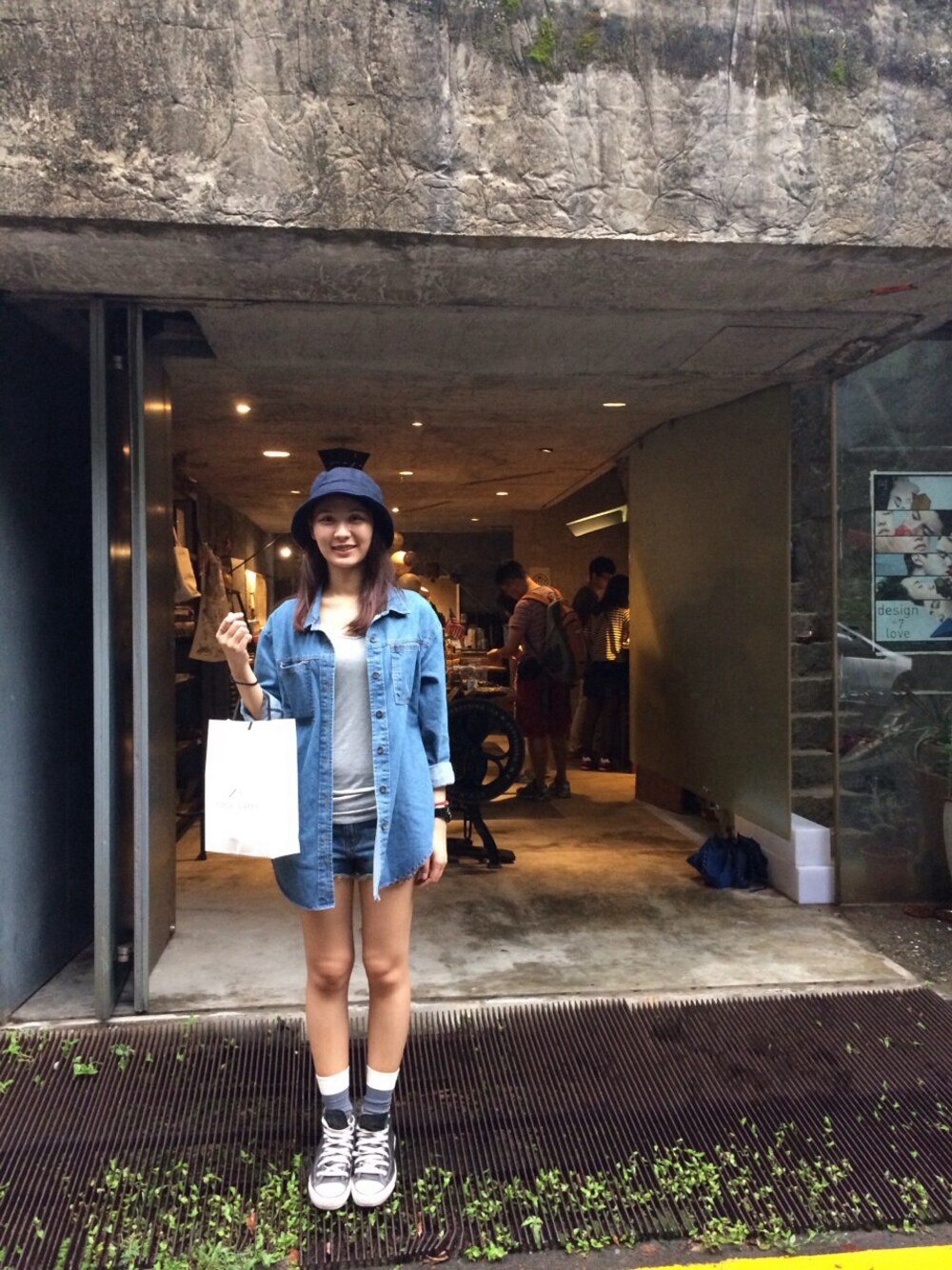 素色漁夫帽 長版牛仔外套 灰色上衣 牛仔短褲 襪子:Pull&Bear 帆布鞋:Converse 手錶:Baby G