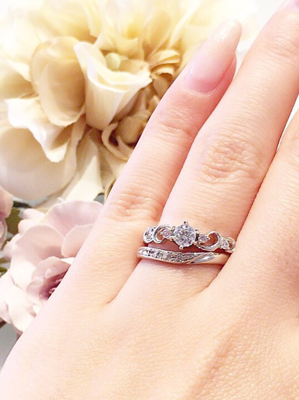 【JKPlanet銀座・表参道】 ピンクダイヤモンドエンゲージリング(婚約指輪) 淡い色合いのピンクダイヤモンドがとてもキュート♡ 重ね着けでより指先を華やかに♪ ☆婚約指輪・結婚指輪…UNE CODE(アンコード)
