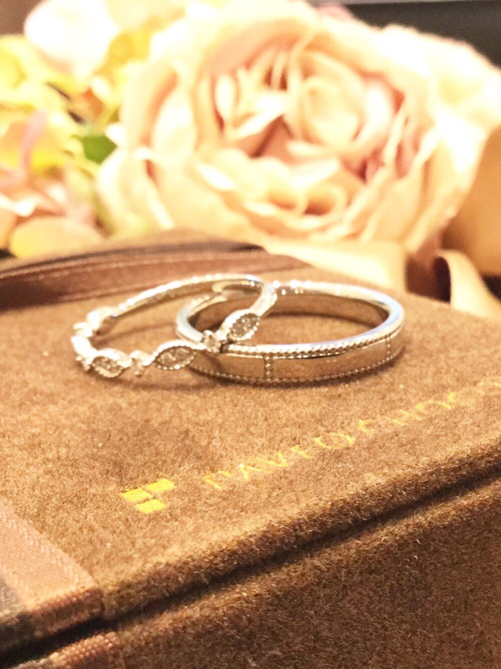 【JK Planet銀座・表参道】結婚指輪:パヴェオショコラ〜ジョワ〜 アンティーク感漂うマリッジリング。 マーキース型の装飾が華やかなレディースタイプとレンガのようなブロック型のデザインが印象的なメンズタイプのリングです。 おしゃれ感が欲しいカップルさんにおすすめのリングです。 【ブランド名】PAVEO CHOCOLAT(パヴェオショコラ) 【リング名】JOIE(ジョワ)