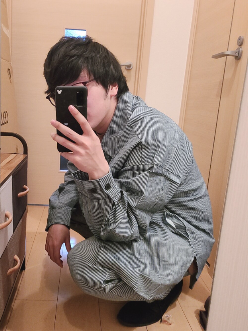 ストライプのセットアップ ジャケットのサイズ少し大きすぎた…🥺 似合ってますか…