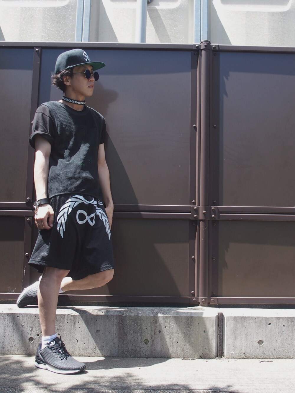 はいこんばんは。 7月6日です。 七夕イブですね。 今日はお仕事が休みでした。 予定を決めて動くのが苦手なのですが、がんばって動きました。 今日の目標は 皮膚科で薬をもらう ファミマで1番くじ 除毛クリームを入手 ハッカ油を入手 ということで。 行ってきました。 昔から肌が弱くて 汗かいても肌が荒れる、 陽に当たっても肌が荒れる、 日焼け止め塗っても肌が荒れる。 と言うなんとも難儀な肌… それなのに運動が好きなので悪循環です。笑 1番くじは でんぱ組.incのを引いてきました。 1番良いの当てました。満足。 そんなことより服の説明を。 今日は久しぶりにブラックコーデ。 メインはnvrmndです。 Tシャツだけでもよかったのですが オールメッシュのタンクトップを レイヤードしました。 写真だとわかりにくいですが しっかり服のプリントが見えるので なかなか重宝しています。 パンツも実はオールメッシュ。 下着が見える程の物ではないです。 メッシュのパンツはあまり 見たことがないのでこれだけでも 存在感があります。 チョーカーは皮です。 これもnvrmndです。 肌が弱いのでほぼ装備しません。笑 そんな感じですかね。 ここ数日はすごく暑いです。 関東の方は涼しいみたいですが 関西は灼熱です… 夜も暑いので熱中症には 十分注意してくださいね。 黒い服はたくさん熱を吸収するので それも気を付けてくださいね! そういえば最近サカナクションにハマってます。