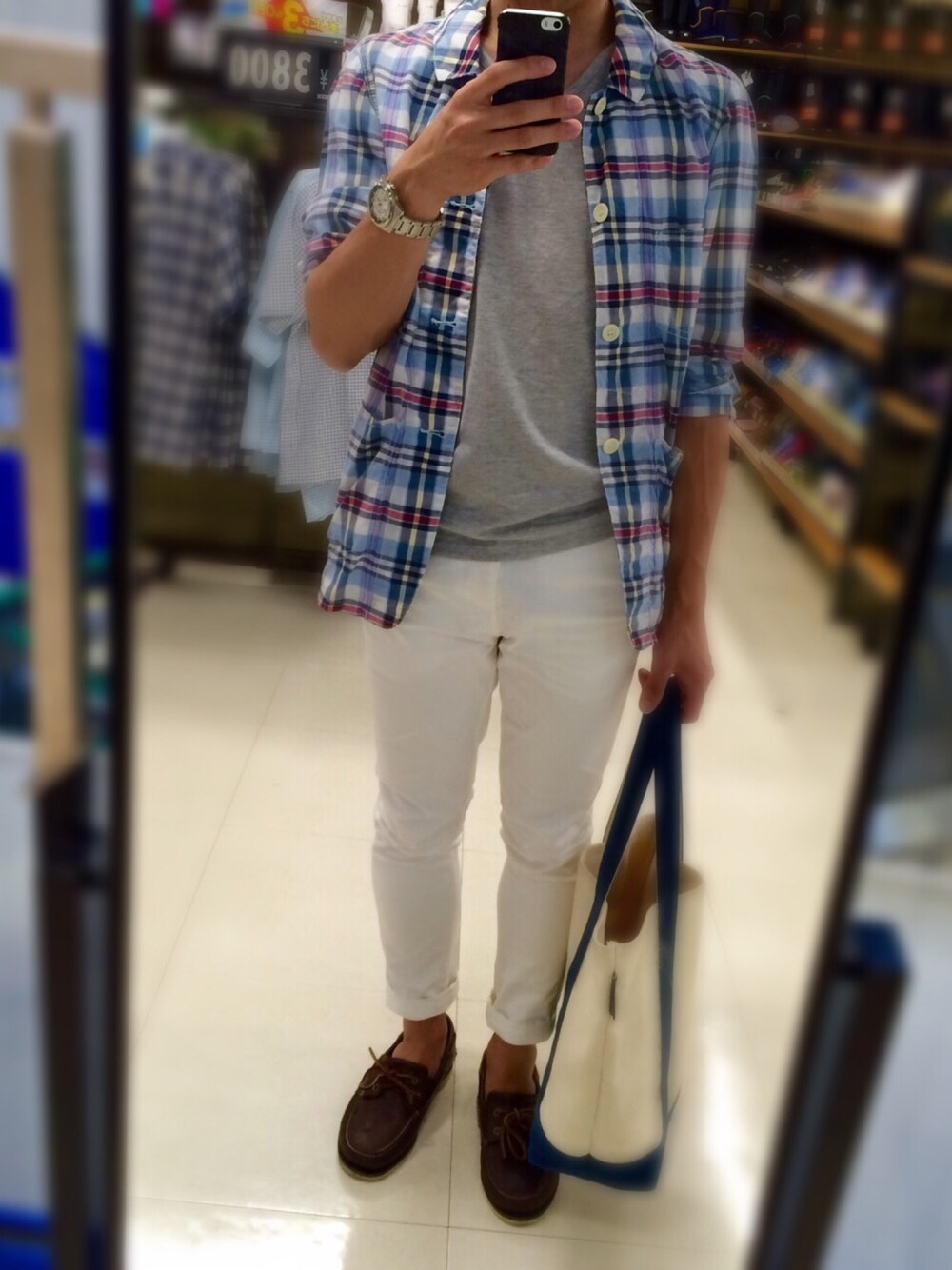 ブルー系のシャツ/ブラウスを着用したメンズの春コーディネートの1枚目の写真
