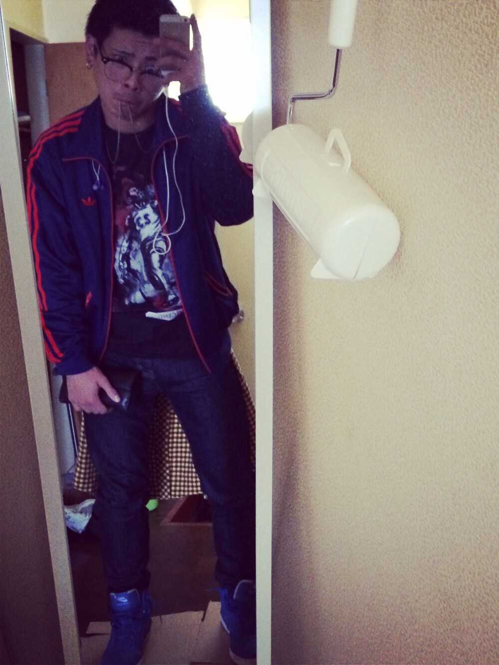 adidasのトップス(古着) JORDANのTシャツ GUストレートデニム NIKE スニーカー(確かダンクハイだった気が…)