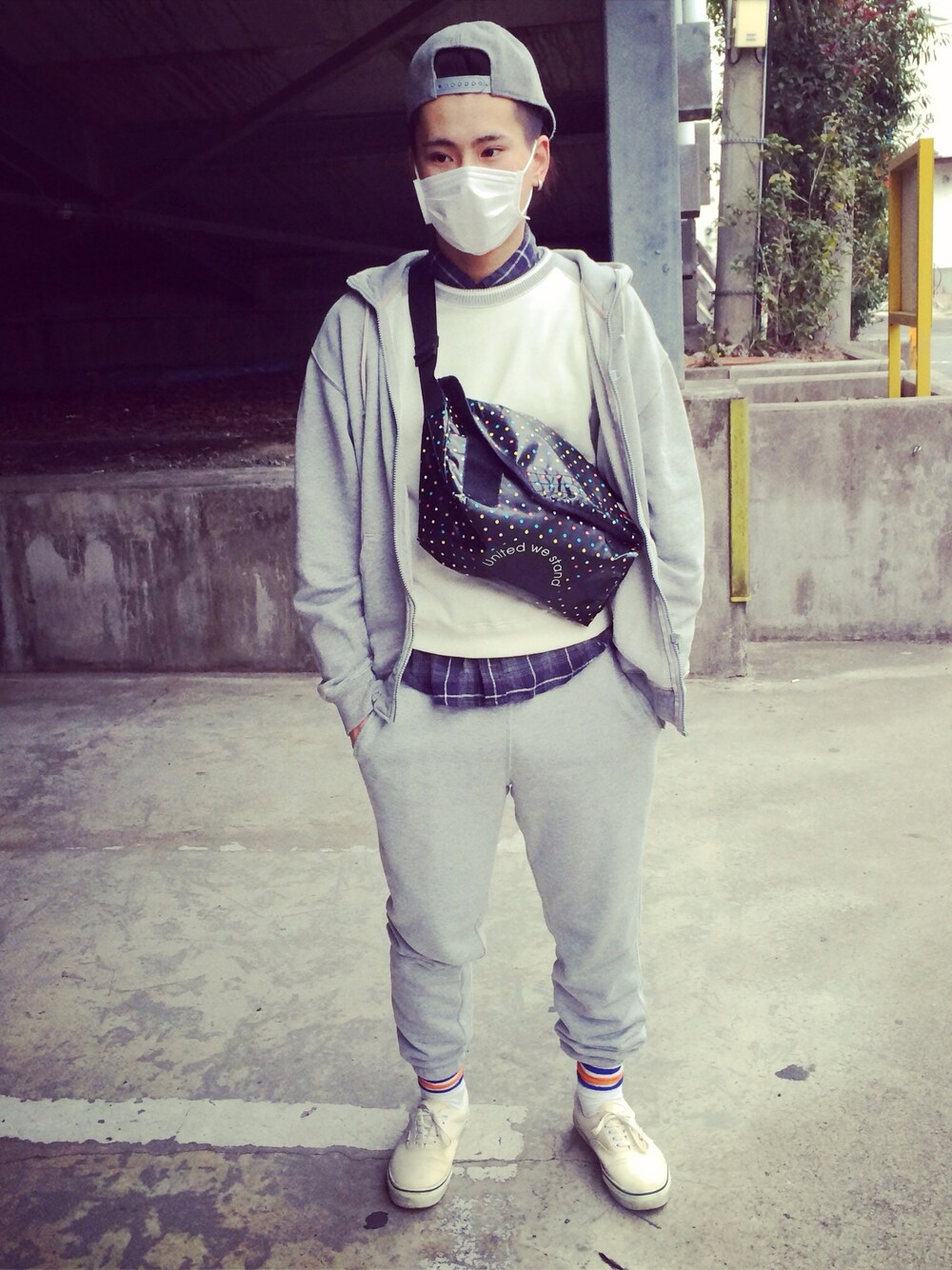 だいぶ前のコーデです笑 上下グレーでセットアップ感を出しつつチェックシャツとラインソックスではずしました 全体的にゆるめな感じを自分なりにだしてみました! ちなみにこのスウェットと中のトレーナーは UNIQLOのルームウェア上下セットです笑