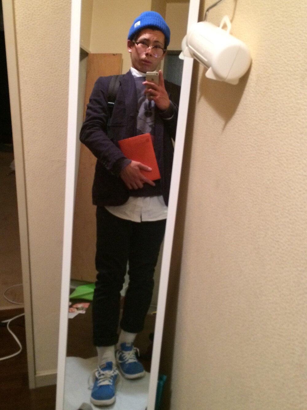 なんか頭良さそうな雰囲気だしておいた笑 青い色が多いから青山みたいな。。 ニットはMEI ミッキーの貰い物のスウェットお気に入り ジャケット GLOBAL WORK シャツ ラルフローレン パンツ UNIQLO ソックス UNIQLO 靴はクロックス ちなみに持ってるオレンジのは革で包まれている本です。笑