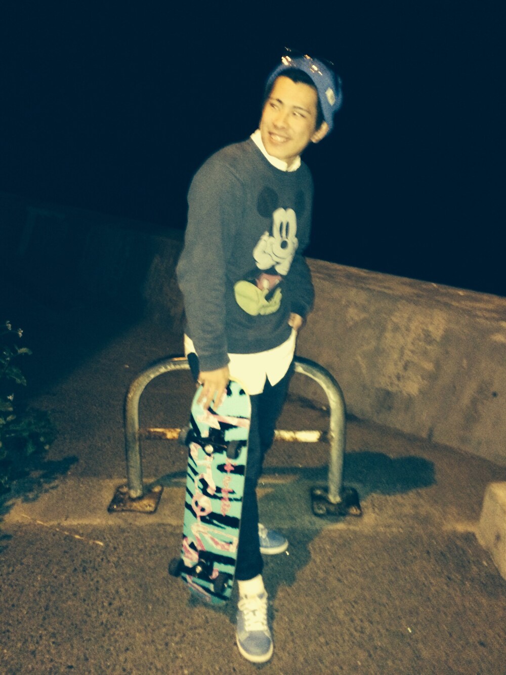 ジャケット脱ぐとこんなん ちょっとスケボー似合ってるかな…?笑 きれいめなストリート?ってやつのつもり 場所は七里ヶ浜ですねん