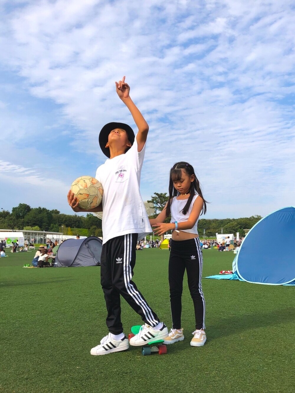 公園コーデ☺︎ 兄 #150cm 妹 #130cm adidas兄妹リンク♡