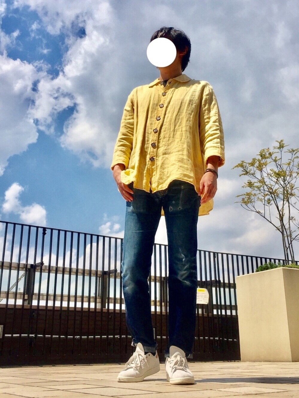 ビンテージのビッグシルエット•イエローシャツ。職場では着て来にくいモノですが、まあたまにはいいでしょう。