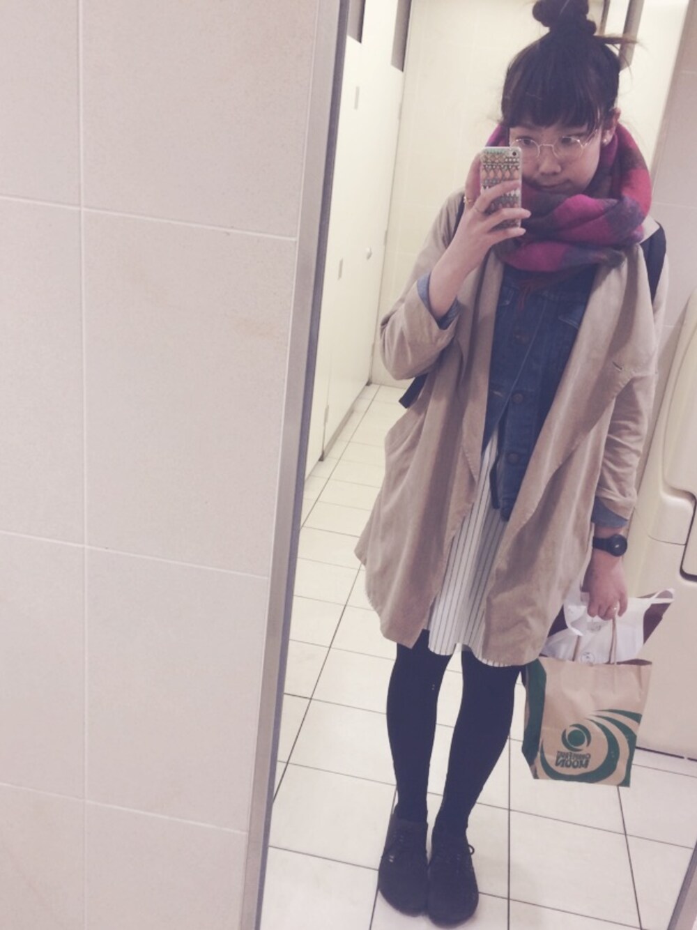 Gジャンとトレンチコートを合わせたあったかコーデ♡