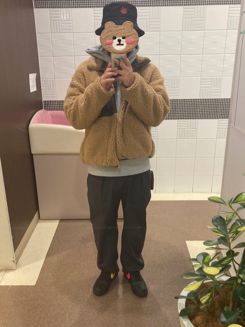 寒いのでボアジャケットに上下GUコーデ。