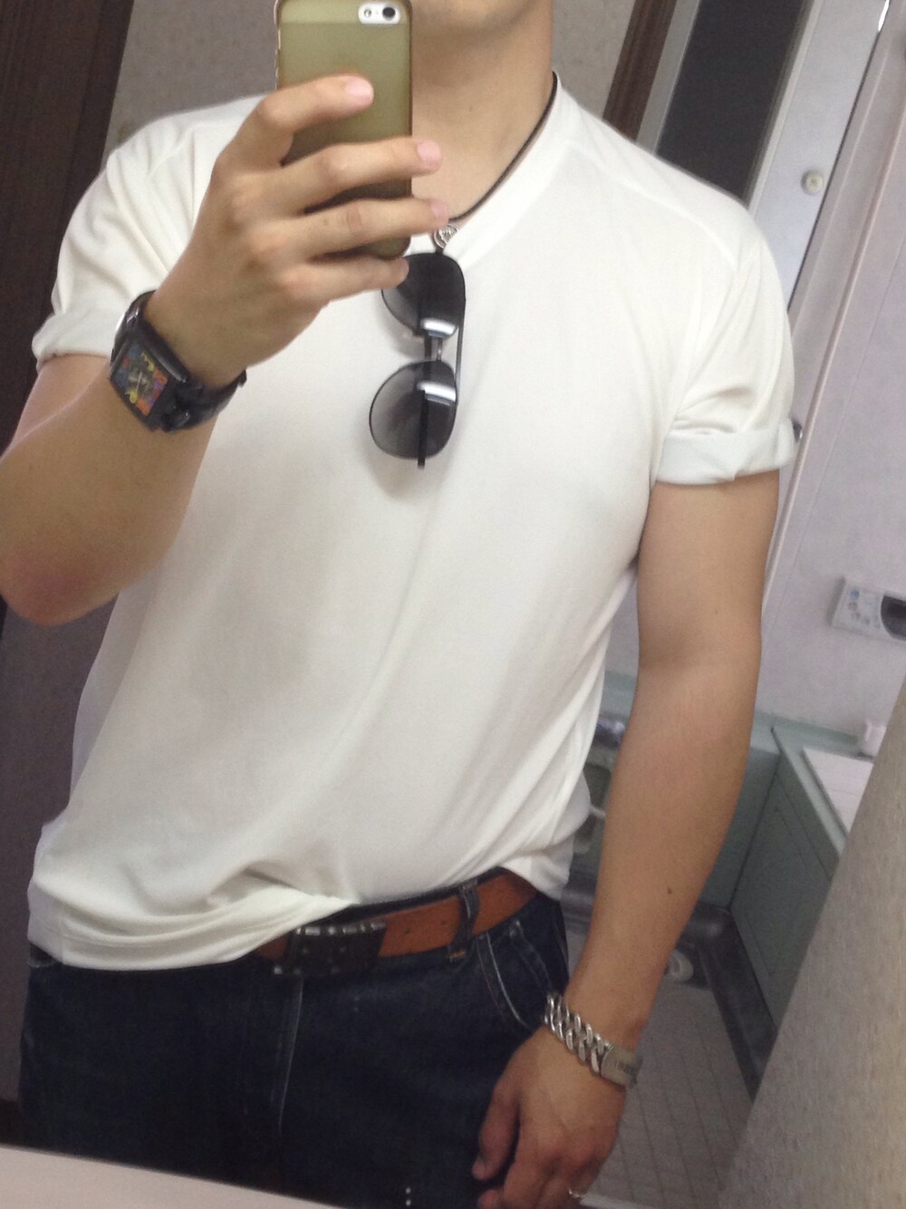 VネックTシャツはユニクロだけど(笑)