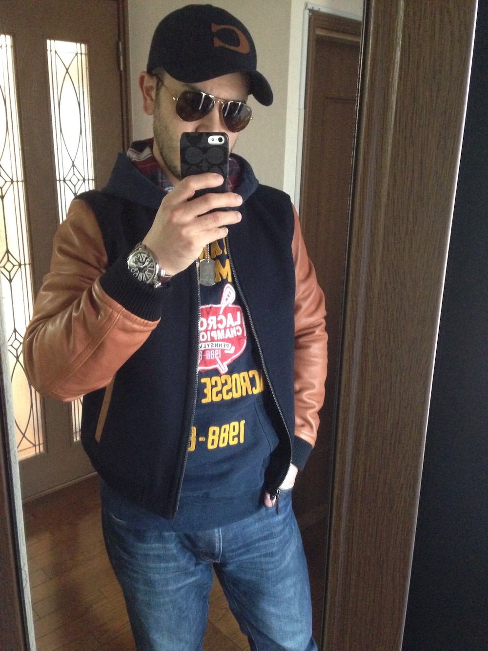 コーチのスタジャンにコーチのキャップにガガミラノのコーディネート✨ 防風ジーンズは快適👍 寒い季節はオシャレが楽しい👍✨✨ オシャレ 好きなら語りましょう✨✨