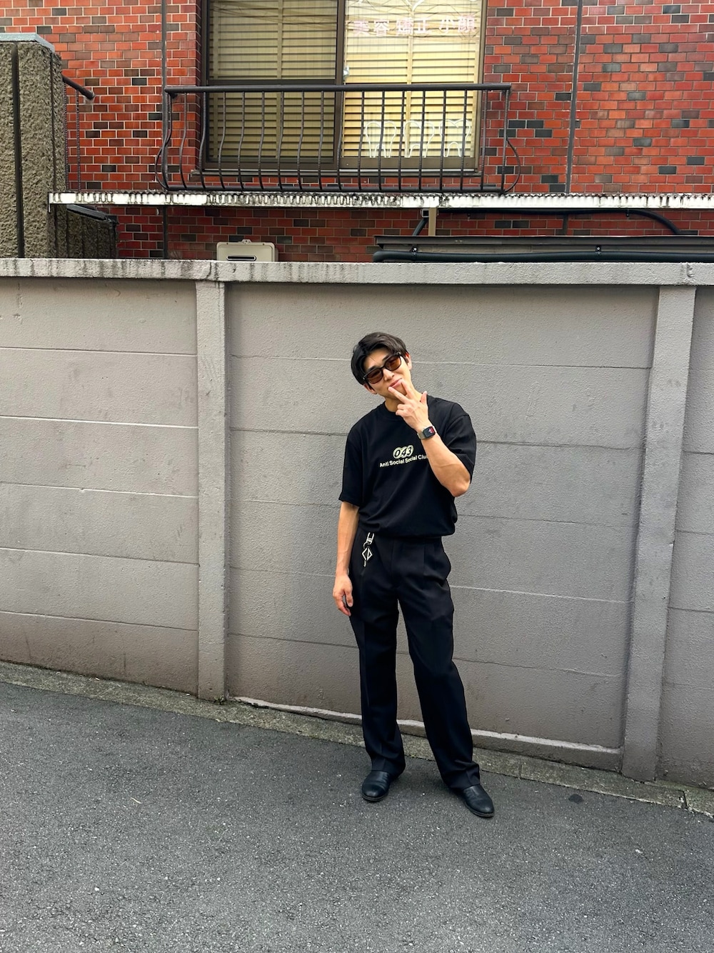 オールブラック スラックス→古着👖 Tシャツ→anti social social club(🇰🇷で購入)