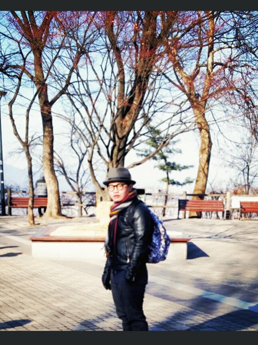 ブラック系のライダースジャケットを着用したメンズの冬コーディネートの1枚目の写真
