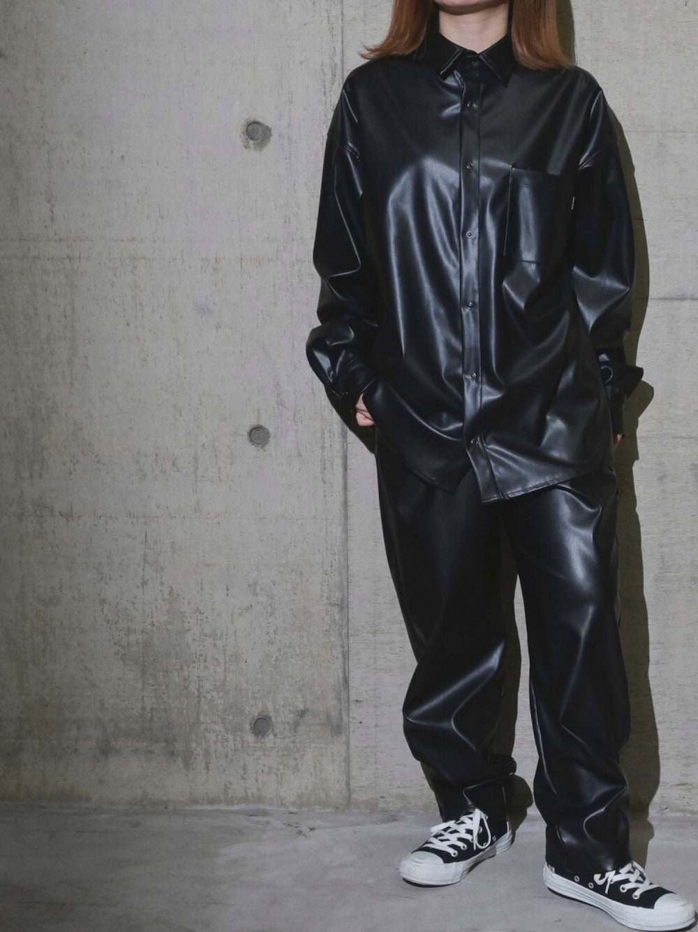 Tomomi/低身長コーデのシャツ/ブラウス「【a】テックレザーシャツ」を使ったコーディネート
