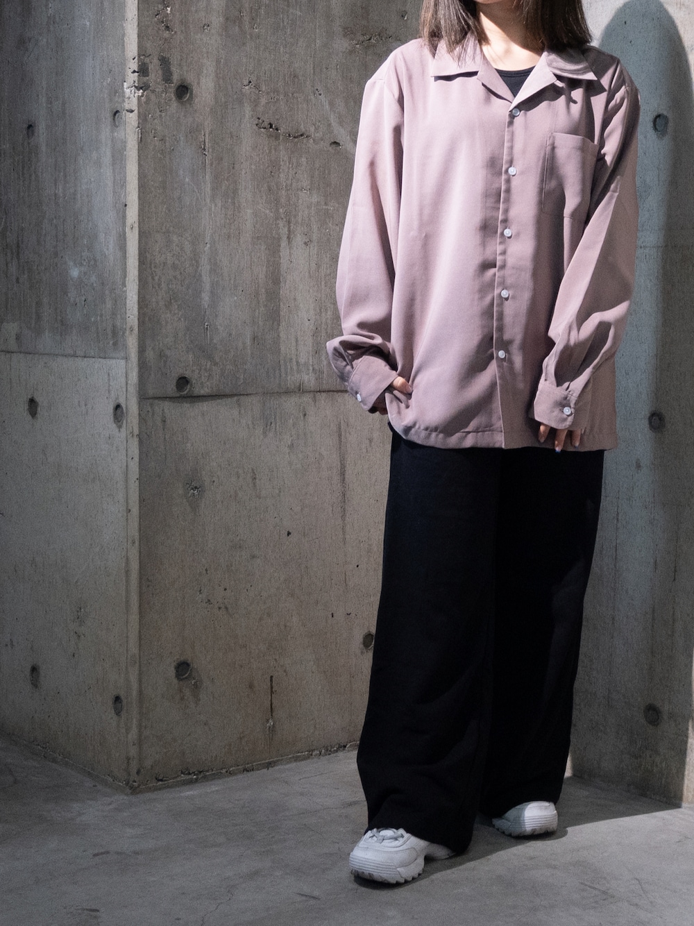 Tomomi/低身長コーデのシャツ/ブラウス「【i】ポリ無地オープンカラーシャツ」を使ったコーディネート