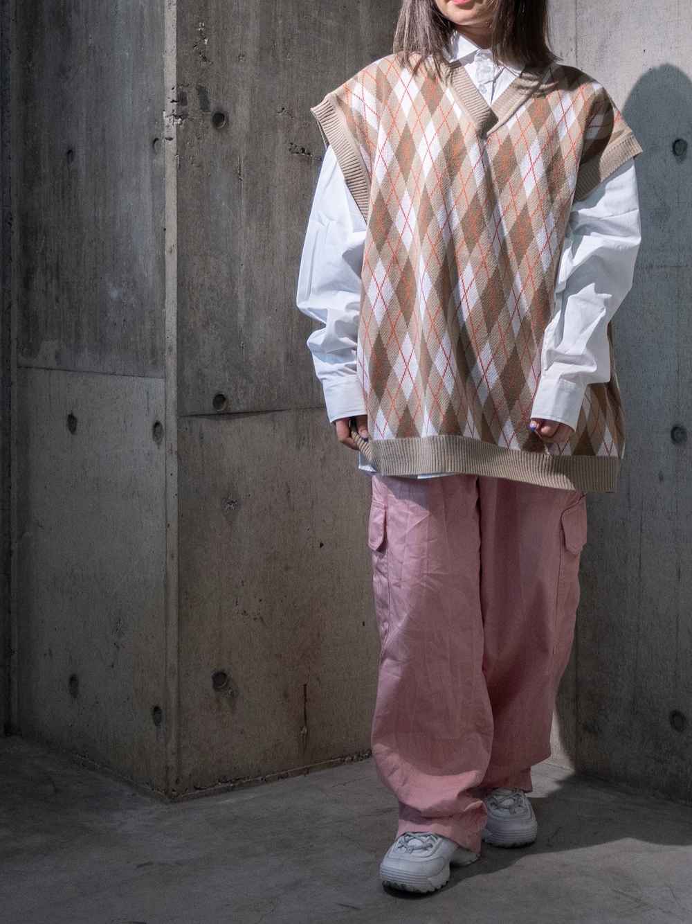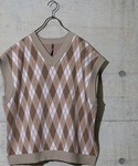 Tomomi/低身長コーデのベスト「【i】アーガイルジャガードビッグサイズベスト」を使ったコーディネート