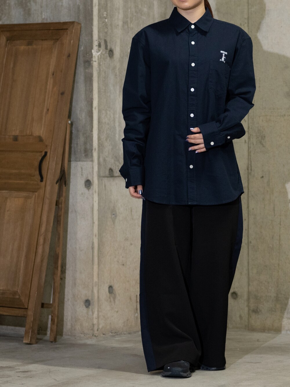 Tomomi/低身長コーデ(JOHN'S CLOSET)のシャツ/ブラウス「【a】オックスワンポイント刺繍レギュラーシャツ 長袖」を使ったコーディネート