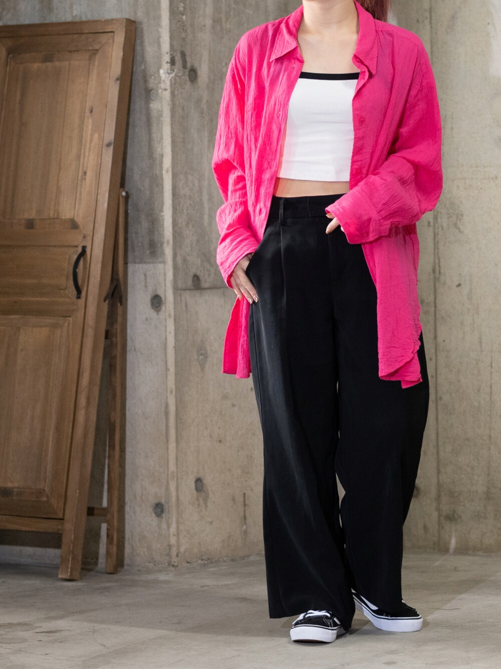 Tomomi/低身長コーデのキャミソール「バイカラークロップドキャミソールNT+E」を使ったコーディネート