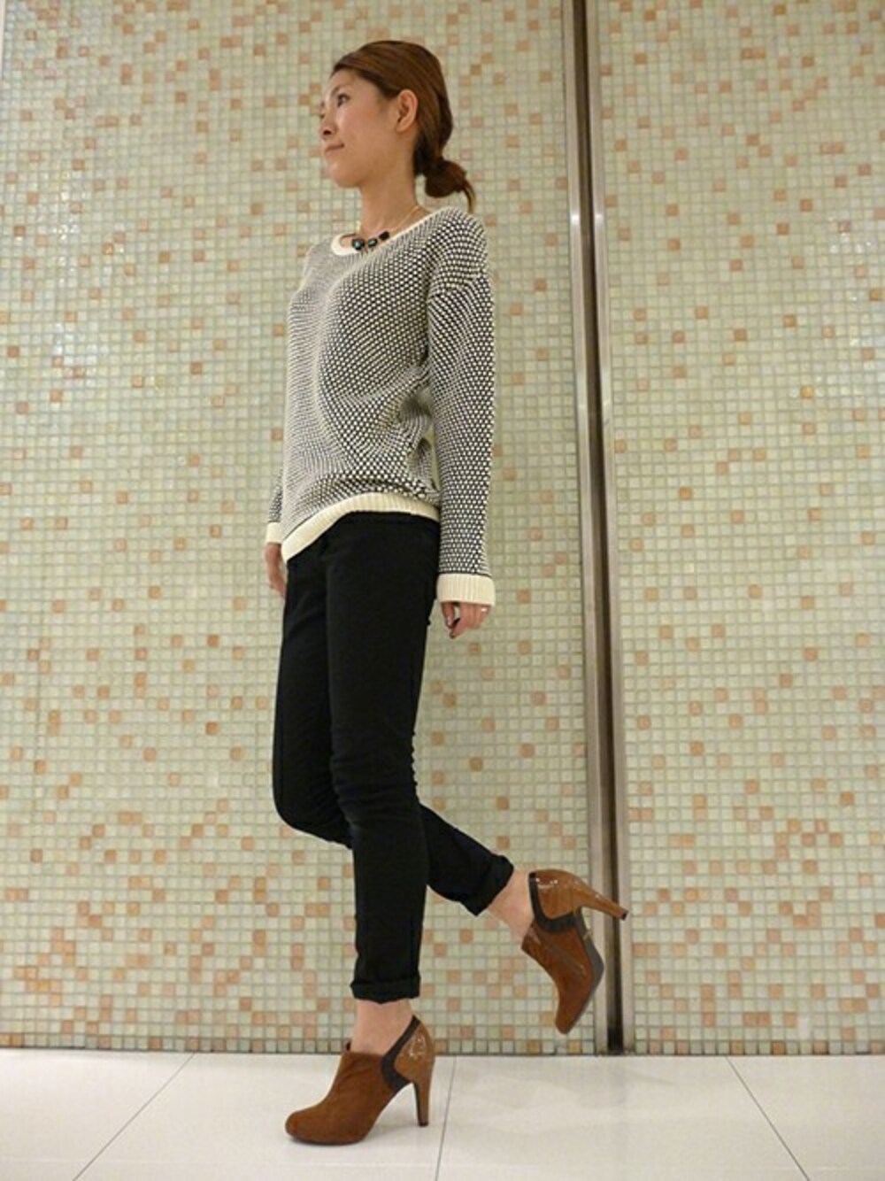 大人気のブーティ☆異素材の組み合わせがとってもオシャレです! 大きめのビジューネックレスとあわせてトレンド感をだすのがおすすめです☆