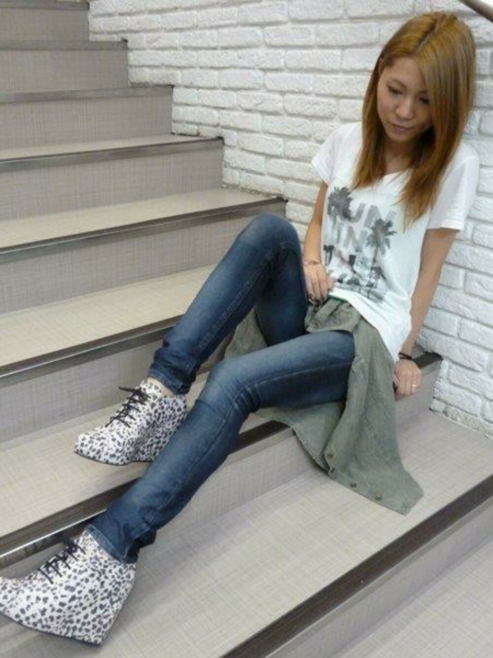 デニムにシャツを巻いてカジュアルに!!足元はアニマル柄でアクセントを付けました。 ウェッジソールなので安定感バツグンでとても歩きやすいです。 パンツ、スカート選ばず使えますので、これからの季節に1足あると重宝しますよ。