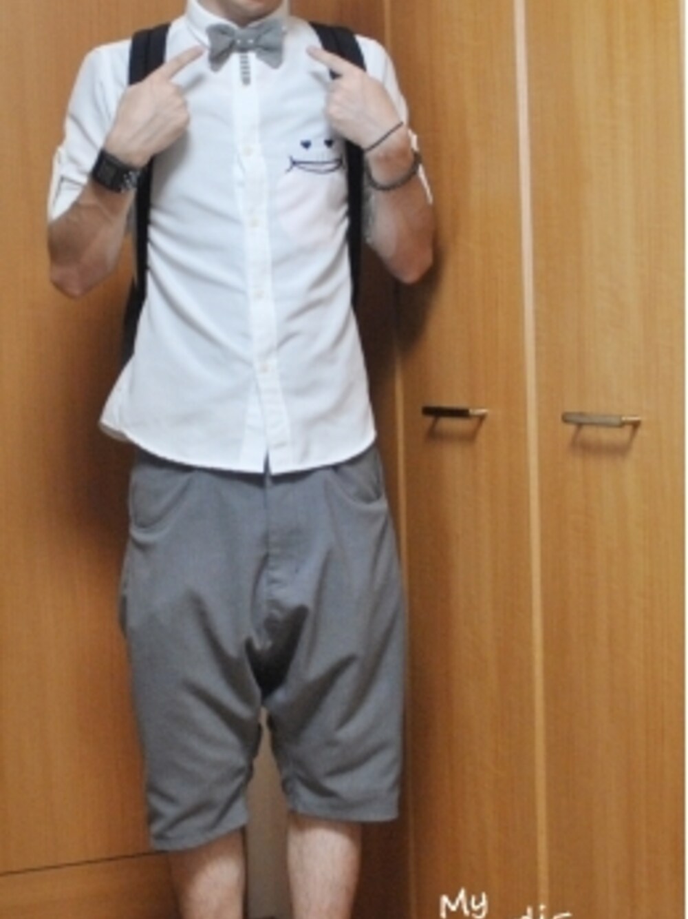 ゾウとカバとパンダのコーデ ネネットのぞう蝶ネクタイと、 カバのカバンを買ったから、 それらを中心にモノトーンでコーデしてみた。 ----アイテム---- ■シャツ■ アップスタートのニコスマイルシャツ。 ハートの目バージョン。白無地のシャツの 方が良かったかな。でも、白無地ない。 ■ネクタイ■ ネネットのゾウネクタイ!(画像3) これは見かけたときに絶対買おう!って、 思ったから買った。赤と灰色で迷ったけど、 やっぱりゾウは灰色かな? 白シャツには赤の方が使い勝手よさそうなんだけど。 灰色は地味に難しい気もしなくもない。。。 ■ズボン■ ツモリのショートサルエルパンツ。 なんかポケットに物入れてるから? ふくらみのボリュームがすごい。。。 ふくらみのボリューム…N.茂雄 ■靴■ スコッチグレインのパンダシューズ。 別に黒靴、灰色の靴でも良いかな(画像5) ■カバン■ ネネットのカバのカバン!(画像4) ズッカから出してれば、 カバアンドズッカのカバのカバン…。 カバが一個多い。お値段は高そうだ。 ----以上---- ついにiPhone 5sが発売された! いまだにガラケーの僕もついに!? って、思ったけど別にiPhoneじゃないと、 ダメなわけじゃないし他メーカーの秋冬機種が 出揃ってからでも遅くないような気がする。 だからもう少しガラケー君よろしくお願いします。 しかし5年後くらいしたら、 やっぱりガラケーのパカパカが恋しくなって 世の中的にもまたパカパカ携帯にもどってると 僕は思うねんなぁー。画面ふたなしって怖いやん? すぐ傷いきそう…。