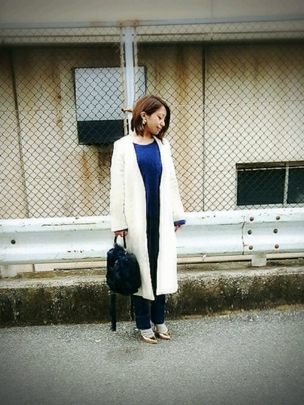 焼肉ランチに寝坊した!!(←また??) とりあえず、な、感じで 白いコートをアクセントにした ブルーコーデ。