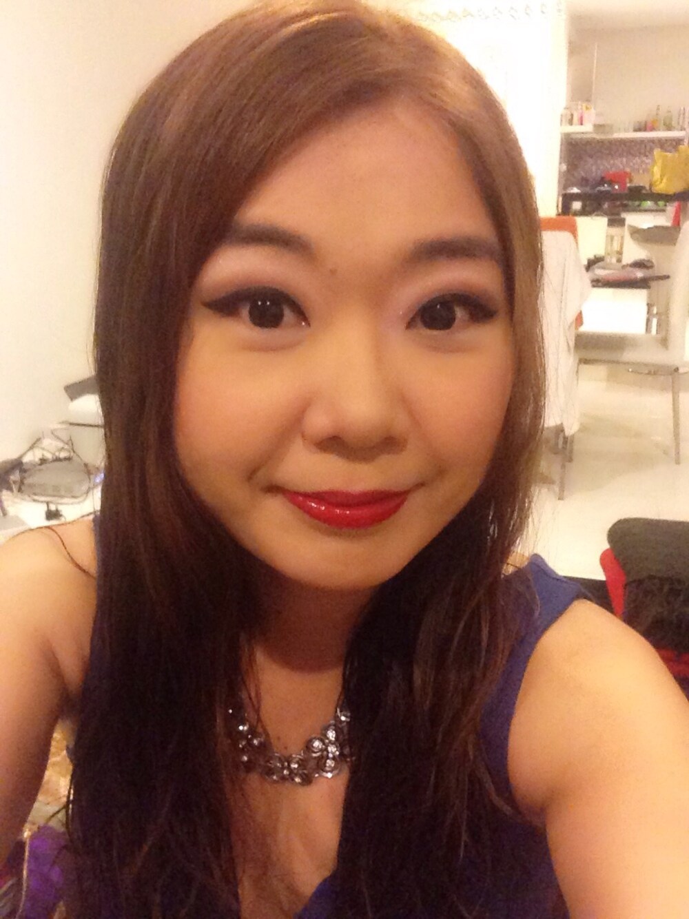 My Christmas face: Eyeliner by Stila, mascara by MAC, eyeshadow by MAC, blusher by Nars, bronzer by MAC, lipstick by Innisfree, foundation by Smashbox and Makeup Forever, pressed powder by MAC, hair by Arimino, perfume by Versace. I'm ready for Christmas dinner!! 😝😘