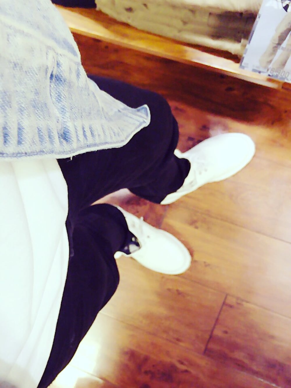 久々気まぐれ~ 薄い色のジージャン好き~ 白のスウェットも可愛いし、ジーパンも はきやすい。白ブーツは文句無しにカッコイイ。