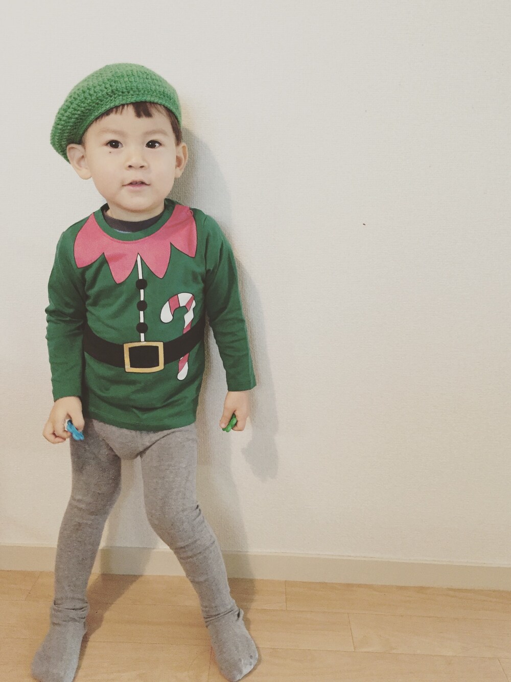 プチプラクリスマスコーデ❤︎おもいのほか、トップスが短かったので、、なんかかぼちゃパンツでも履かせたらよかったかな^_^;