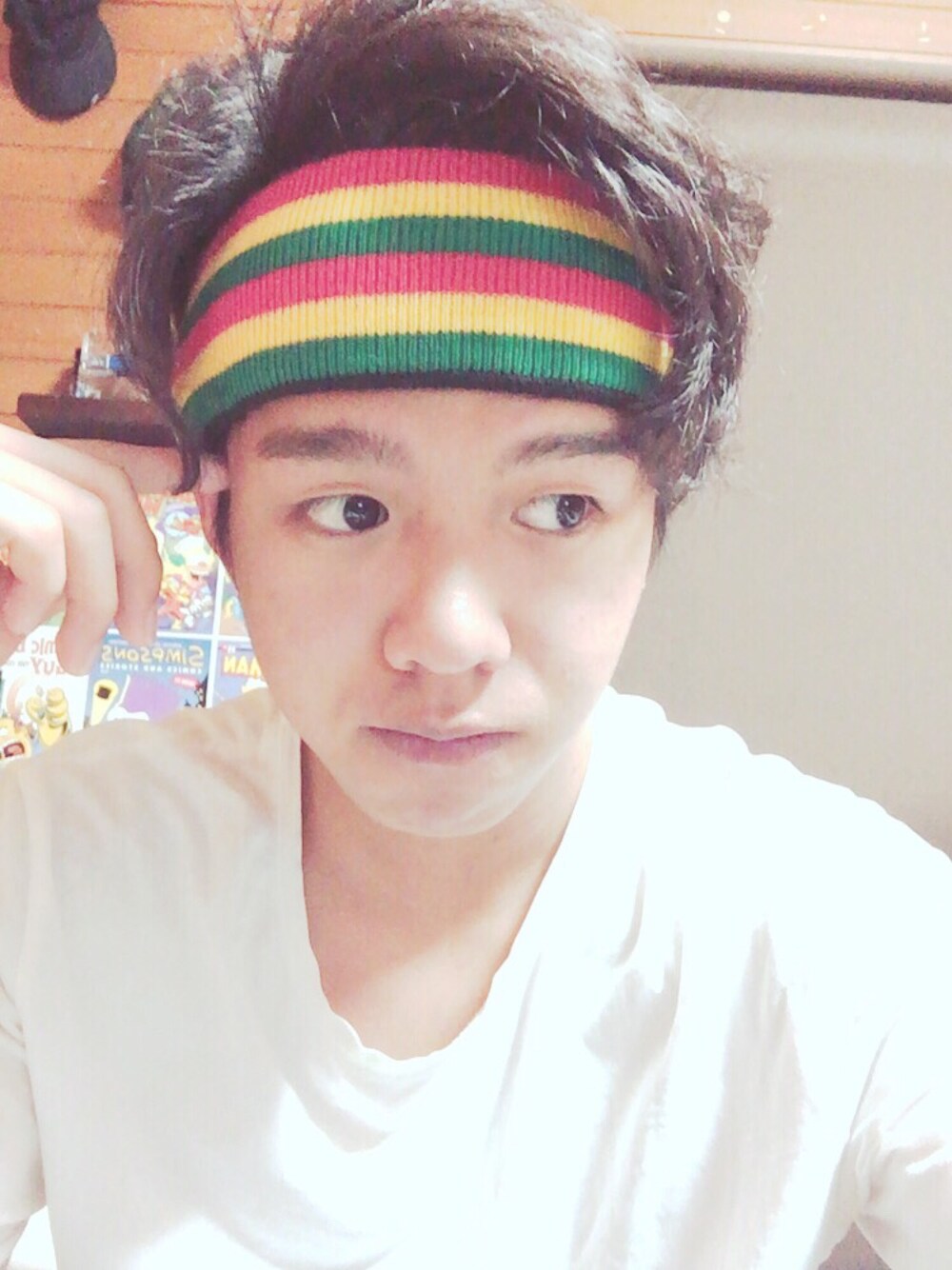 風呂上がりヘアバンド(・ω・) 昨日のだけど笑 民族だね笑