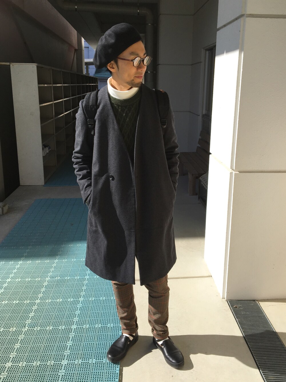 ベレー&タートルにノーカラーコートでシュッとしてみましたw