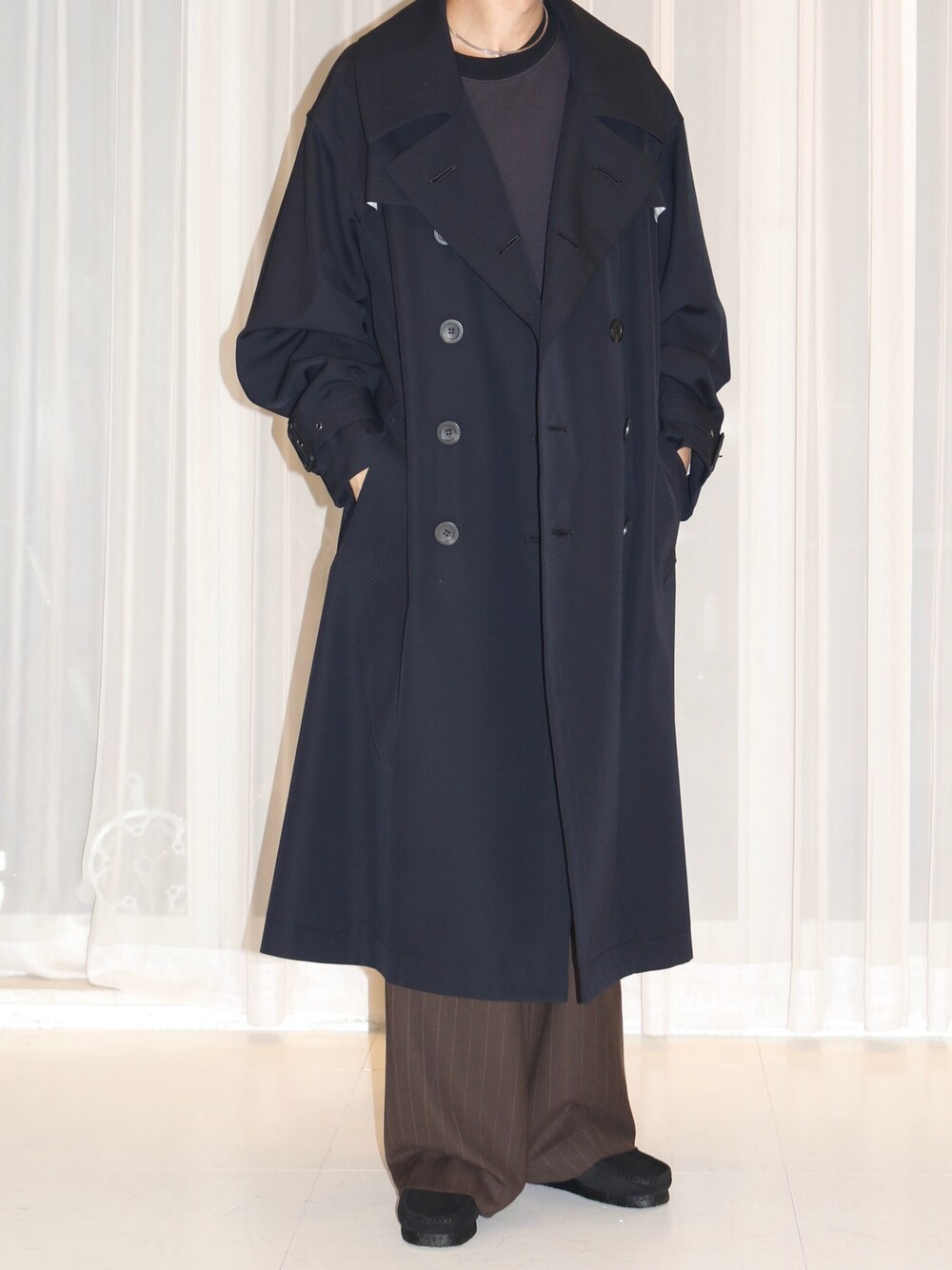 JION SUDO(GARDEN名古屋)(GARDEN 名古屋店)のステンカラーコート「Robes&Confections/ローブス&コンフェクションズ/Water-repellent High Density Wool Chambray Trench Coat/撥水高密度ウールシャンブレートレンチコート/DRC-C01-106H」を使ったコーディネート