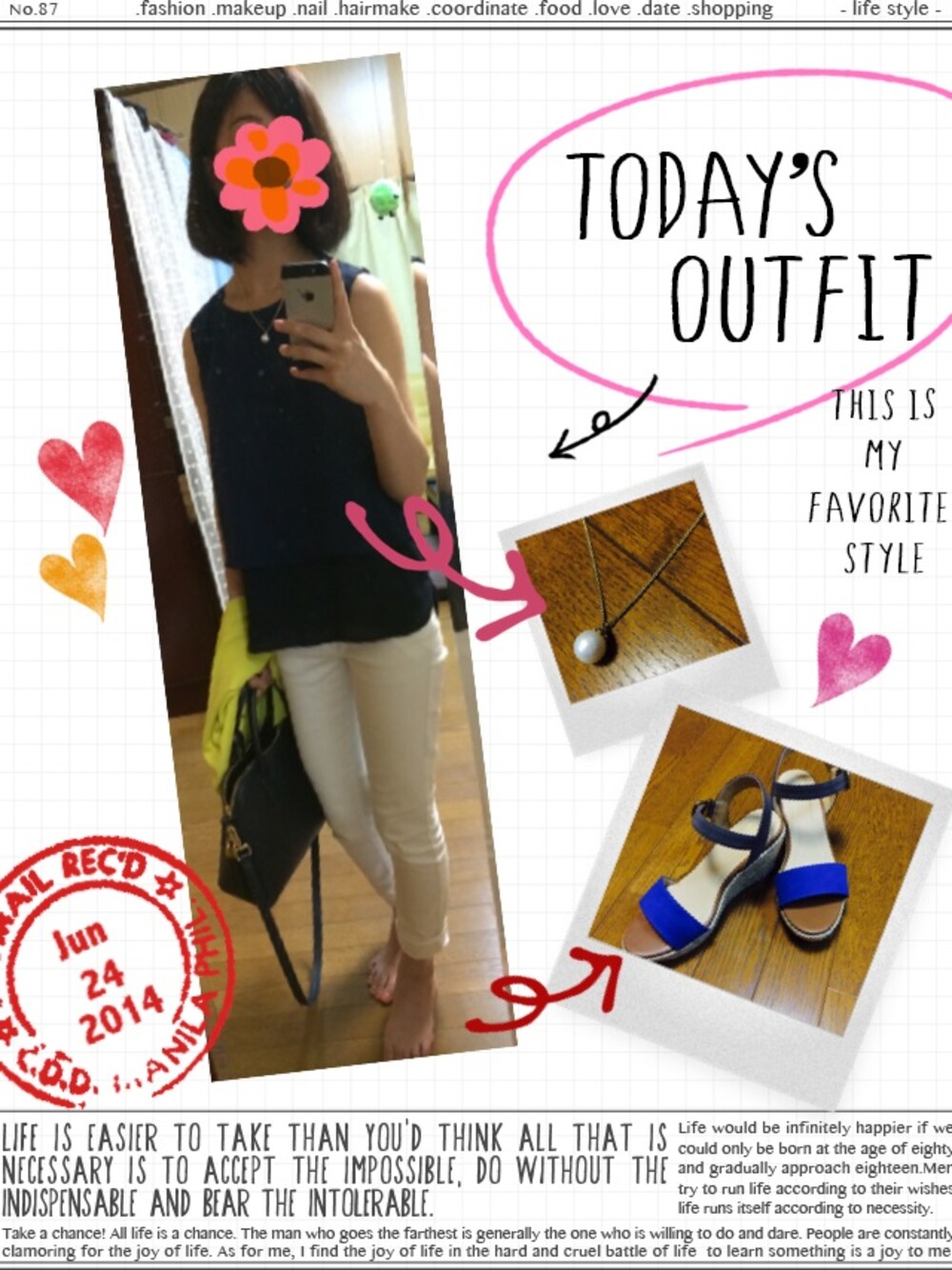 シンプルに◎ ネックレスもパールで大人っぽく。 ロペピクニックで買ったノースリが思いのほか使いやすい!色違いも欲しいな。。 冷房対策にカーディガンを手持ちしましたが 結局羽織らなくてもいい天気でした!